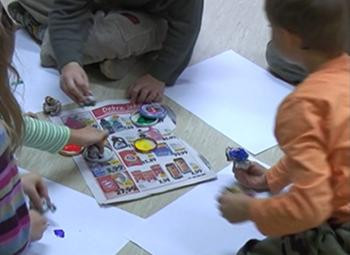 Jeanne a quatre ans et demi. Elle invente une histoire qu'elle met en forme ensuite avec Monique |