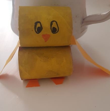 Abdelmalik a créé un poussin avec un rouleau de carton coupé en deux.