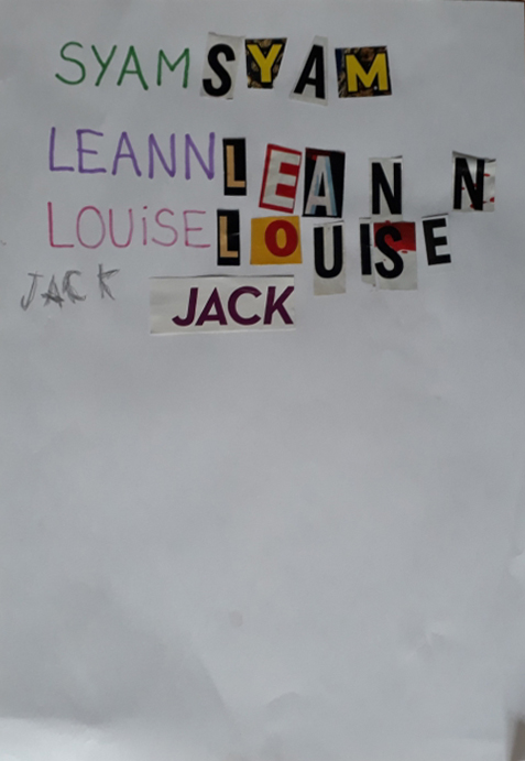 Ecrire avec des lettres découpées dans des magazines Jack |