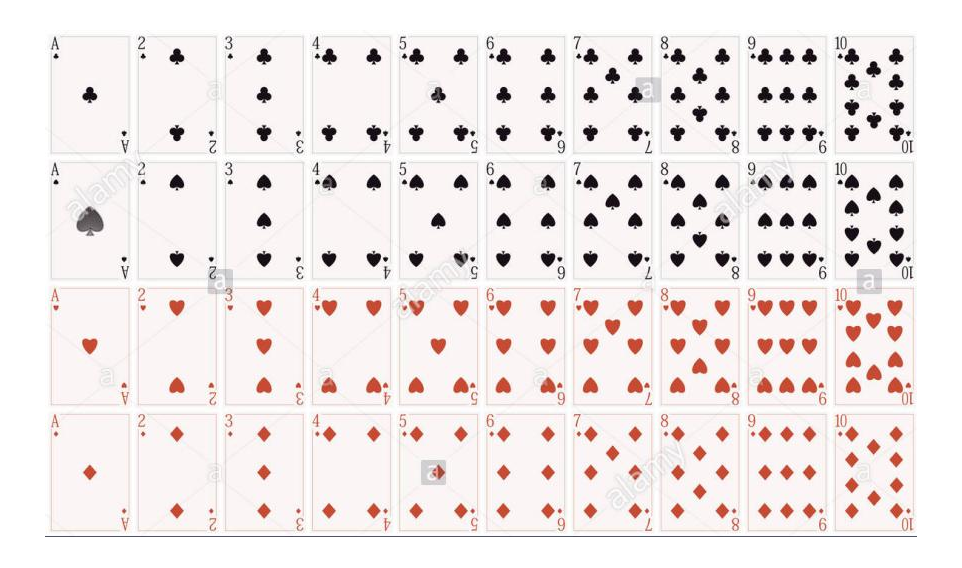 Il faut un jeu de 54 cartes dont on garde les 10 premières cartes d'une couleur.