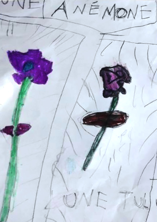 Les enfants ont été invités à aller le voir afin d'identifier les noms des plantes, de les dessiner et un travail d'écriture a aussi été proposé en prolongement.