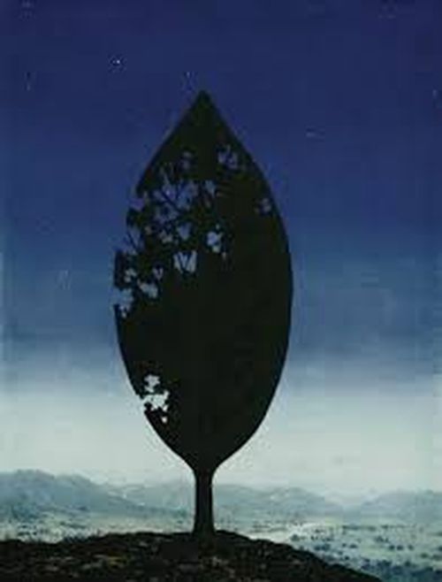 Magritte " le Chemin du ciel"  Poser une feuille d'arbre enduite de gouache noire sur un fond de dégradé de bleu
