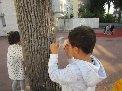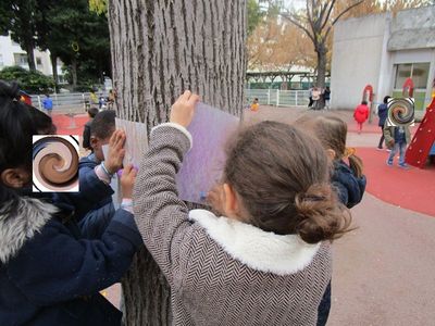 Cette première approche est l'occasion notamment d'apprendre le vocabulaire lié aux arbres que beaucoup d'enfants ne connaissent pas : les différentes parties de l'arbre, le nom des variétés de notre cour, la forme de ces végétaux et de leurs feuilles.