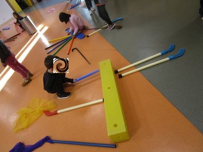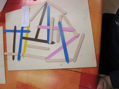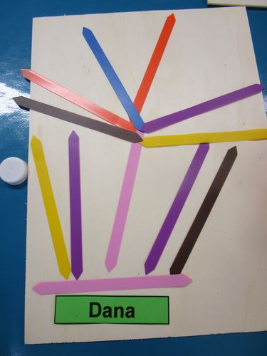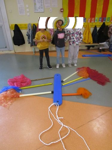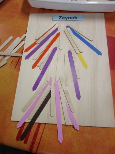 Les enfants ont un peu de difficulté à mémoriser les différentes parties de l'arbre. En salle de motricité, ils ont à disposition du matériel pour créer des arbres. Ce travail est mené par groupe de deux ou trois et les créateurs présentent ensuite leurs réalisations. Des racines ont été ajoutées à beaucoup d'arbres, notion difficile à appréhender pour beaucoup jusque là !