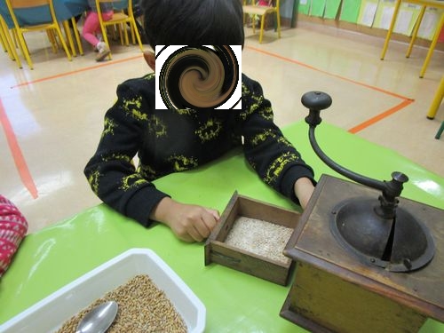 Les enfants ont pu raconter cette histoire à l'aide d'une maquette, et des marottes qu'ils ont dessinées. Ils ont eu l'occasion de moudre du blé avec un moulin et ils ont aussi planté du blé.