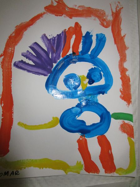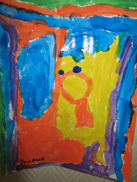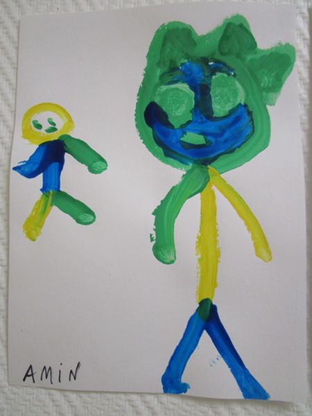 Puis, j'ai proposé aux élèves de peindre le monstre comme « ils le voyaient dans leur tête ». Ensuite, ils ont décrit leurs monstres.