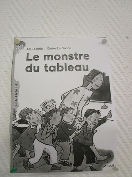 En début d'année, nous avons travaillé sur l'album « Le monstre du tableau » de Méli Marlo. Les premiers jours, j'ai lu l'histoire peu à peu sans montrer les images. Plusieurs séances ont été menées à l'oral pour reformuler l'histoire, faire des hypothèses et expliquer le vocabulaire non connu.