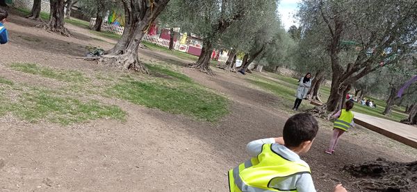 .... Une chasse aux oeufs, le jardin est un lieu idéal pour l'organiser. Pendant le pique nique, les parents accompagnateurs et moi avons caché les oeufs en chocolat dans les oliviers et dans l'herbe. Un petit chien semblait très intéressé et il a fallu monter la garde...