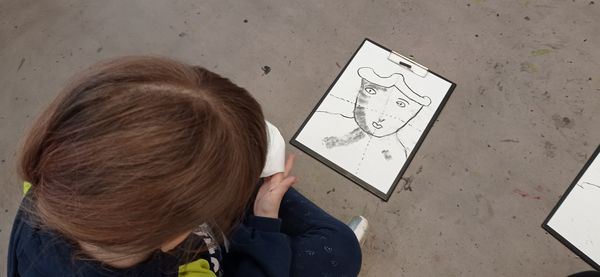 Bon, maintenant c'est l'heure de nous rendre au musée pour la visite, les oeufs seront mangés plus tard. Nous sommes attendus par Sylvie, la guide qui va nous faire découvrir les collections . Une séance de pratique est prévue à la fin : faire le portrait de Madame Matisse au fusain. Les enfants ont très bien participé et ont bien répondu aux nombreuses questions qui leur ont été posées.